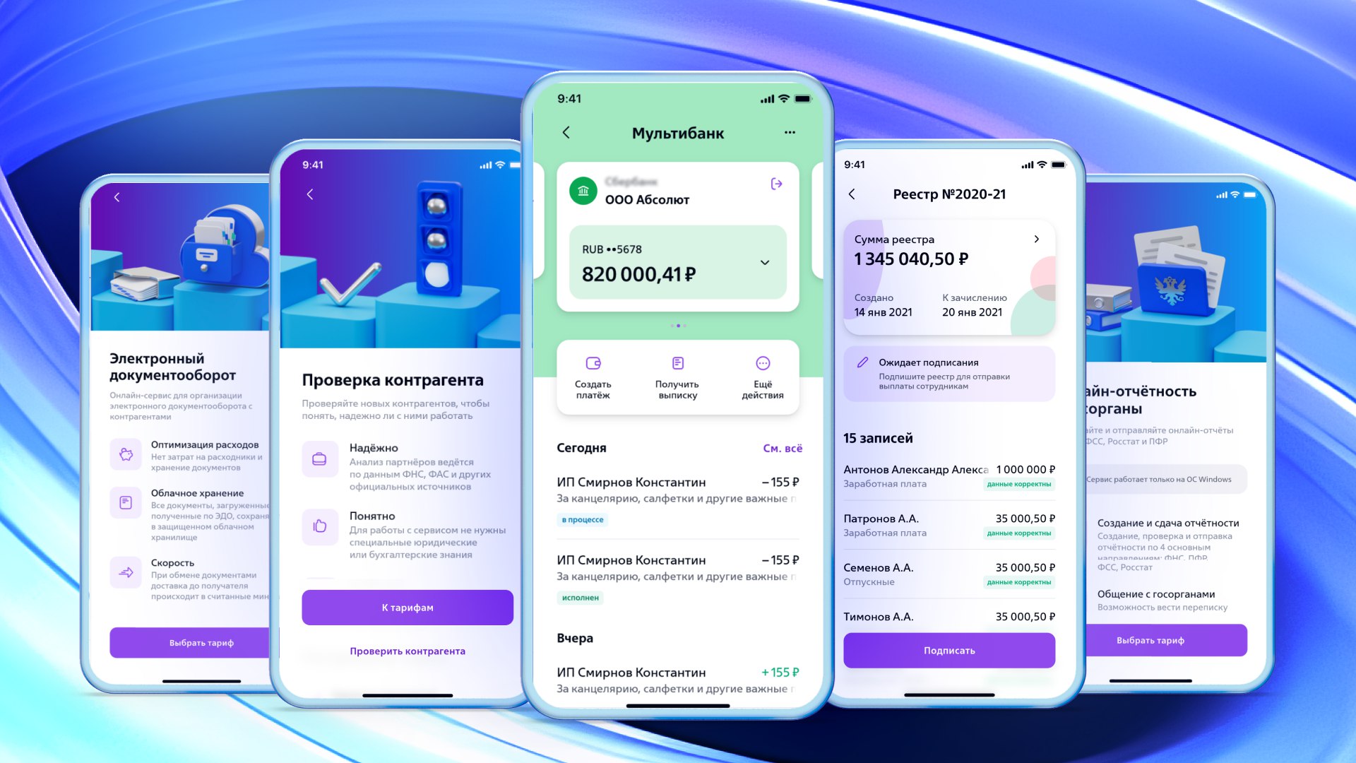 - подпись документов в один клик;