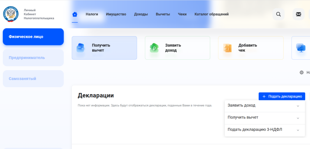 По итогам года подайте декларацию 3-НДФЛ. Это можно сделать в личном кабинете налогоплательщика на сайте ФНС.