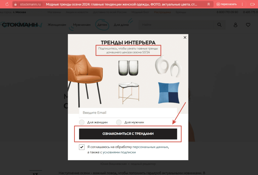 Рядом со статьёй часто размещают поп-ап окно с предложением подписаться на рассылку, после того, как пользователь закончит читать статью. Обычно поп-ап сопровождается словами: «Подпишитесь на нас в Телеграм (или в Дзене), чтобы всегда быть в курсе всех новостей из мира моды».