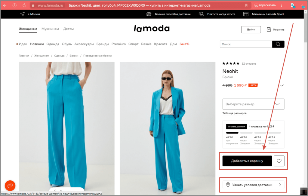 - В карточке товара. Обычно здесь размещают такие CTA: «Добавить в корзину», «Купить сейчас», «Узнать больше» или «Подписаться на уведомления». Выбор CTA зависит от цели.