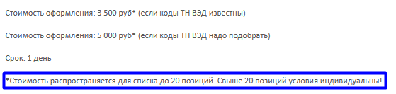В отказном письме можно указать неограниченное число наименований продукции.