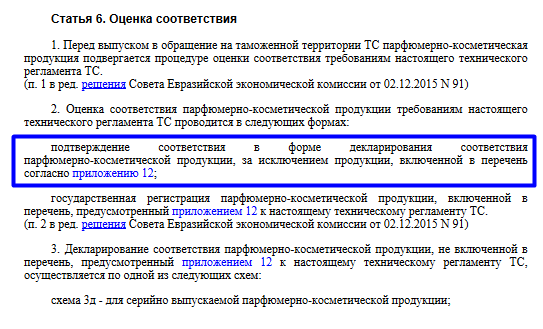 Например, чтобы подтвердить соответствие парфюмерно-косметической продукции, нужна декларация соответствия.