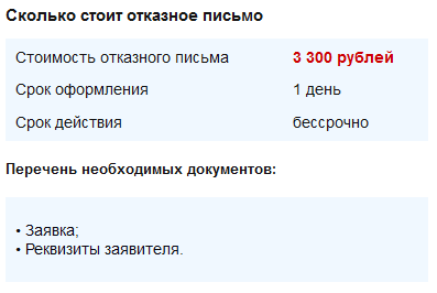 Где получить отказное письмо и сколько это стоит