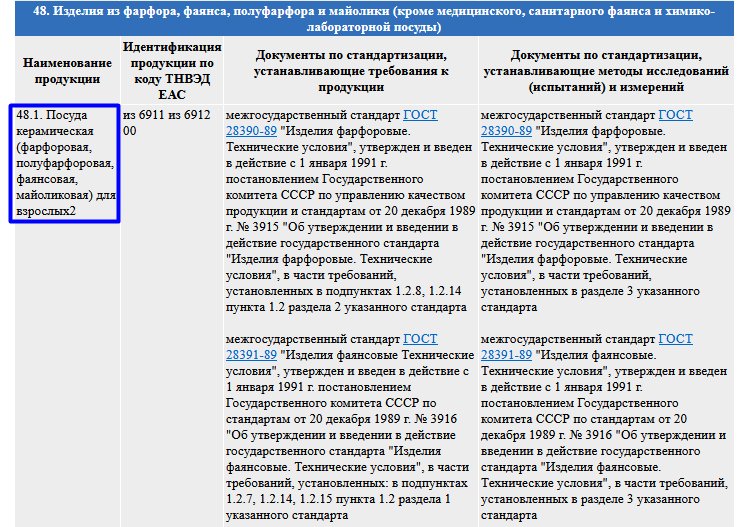 Например, для посуды из фарфора нужна декларация по форме ГОСТ 28390-89.