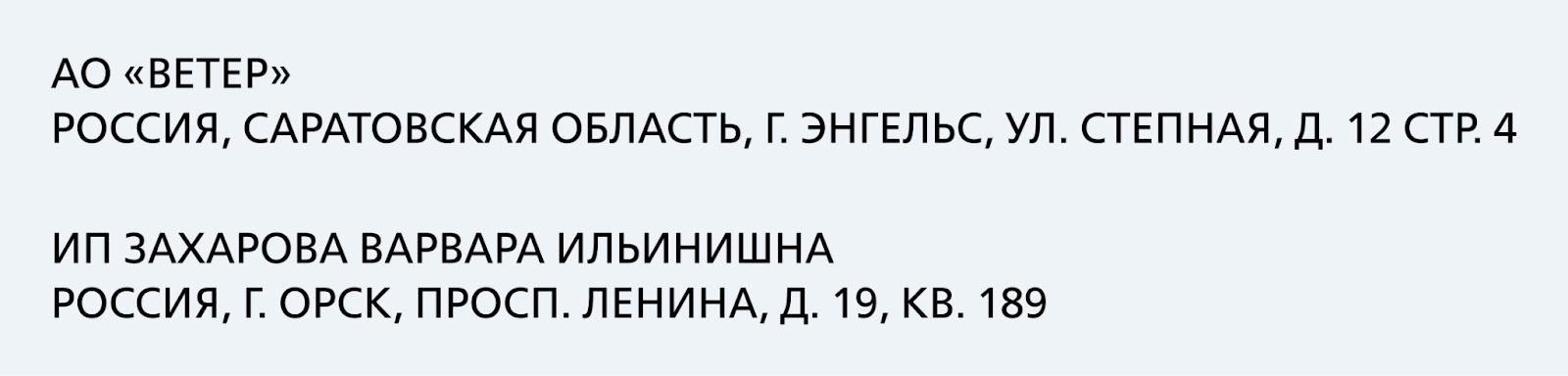 1. Данные об участниках сделки: декларанте, отправителе и получателе. Для юридических лиц указывают краткое наименование организации и местонахождения. Для ИП — ФИО и место жительства. Вот как это будет выглядеть в бланке:
