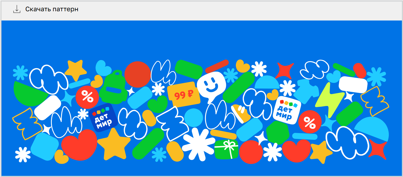 Если фон состоит из изображения или паттерна, стоит дать ссылку на скачивание. Так сделали и в гайдлайне «Детского мира»