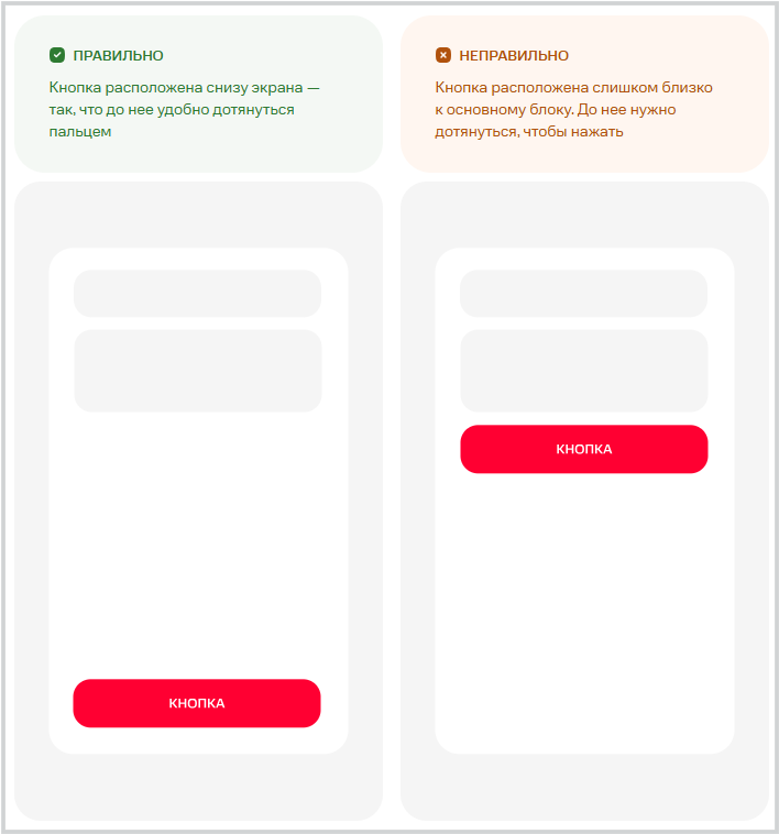 Например, для кнопки в гайдлайне пропишут: «Кнопка оранжевая, скругленная, с черным текстом. При наведении становится темнее, при нажатии меняет оттенок. Расположена в правом верхнем углу экрана».