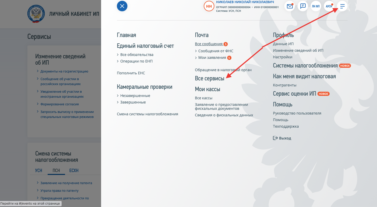В личном кабинете ИП нужно перейти в меню «Все сервисы»