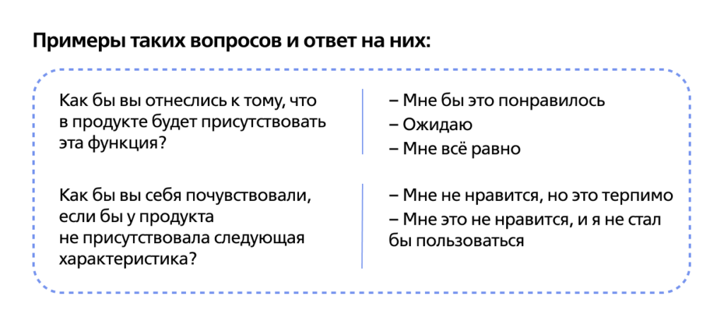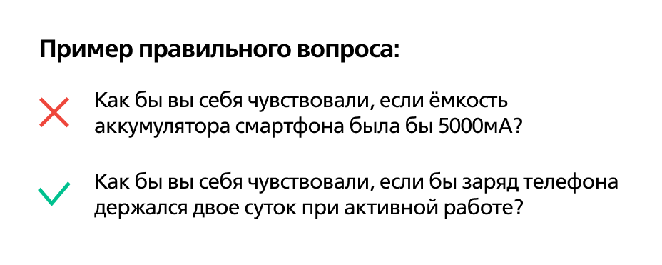 Чтобы точно узнать пользу, которую принесёт покупателю функция, нужно задавать более утвердительные вопросы. Также при составлении вопросов не нужно фокусироваться на нескольких темах, а также нужно всегда давать ясные формулировки.