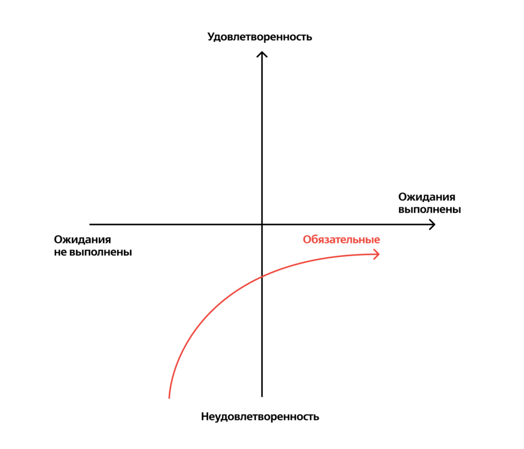 К ним относятся атрибуты продукта, без которых не имеет смысла покупать продукт и пользоваться им. По мнению Кано, у товара или услуги будет низкая функциональность, а у пользователей — высокая неудовлетворённость.
