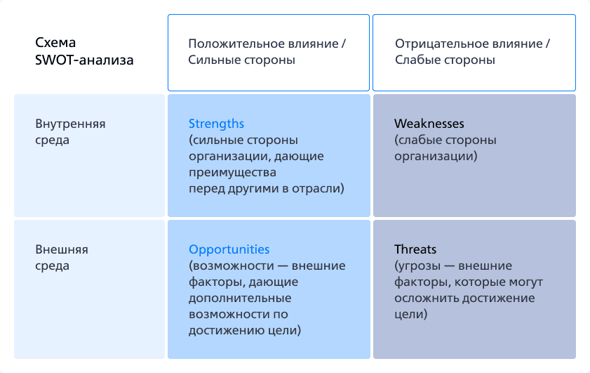 Действенный способ подготовки к переговорам – провести СВОТ-анализ. Это метод, который помогает определить сильные и слабые стороны оппонента. Подробно о методике рассказывали здесь.