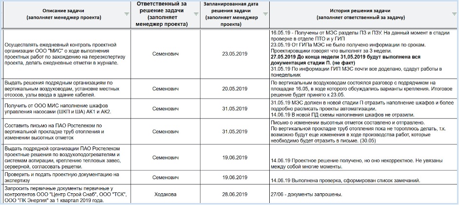 По каждой задаче мы прописывали не только результат, которого хотим добиться, но и историю решений: