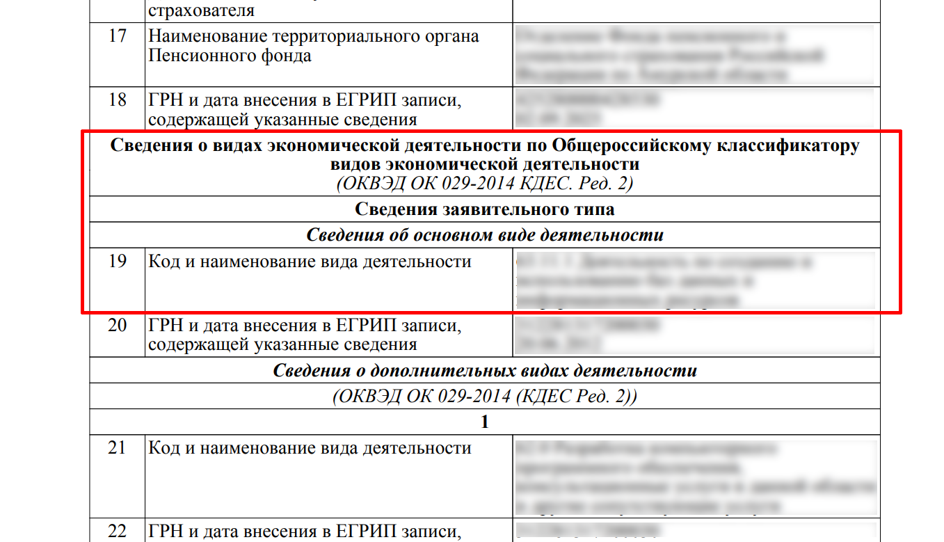 Скачайте выписку и найдите в ней раздел «Сведения о видах экономической деятельности по Общероссийскому классификатору видов экономической деятельности». Обычно он находится на второй странице. Там и будет указан ваш основной код ОКВЭД.