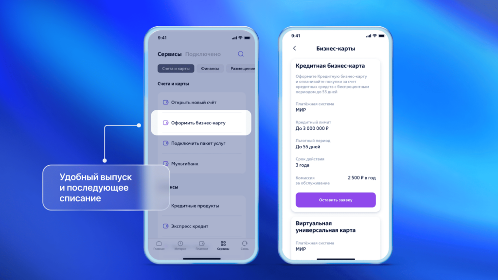 Управление бизнес-картами через приложение