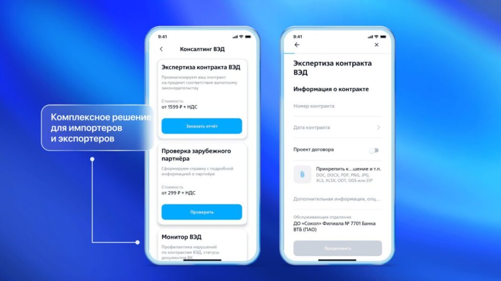 В мобильном банке доступен такой функционал, как таможенные сервисы, обмен валют и консалтинг ВЭД. Это позволяет исполнять обязательства по внешнеэкономическим контрактам (в том числе расчеты с нерезидентами). Эксперты оценили наличие единой точки входа в экосистему продуктов ВЭД и возможность проводить онлайн-конверсию сразу в приложении, а не просто ознакомиться с курсом валют.
