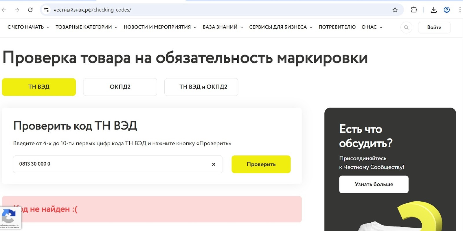 - Определите, нужна ли товару обязательная маркировка. Проверьте код ТН ВЭД через систему «Честный знак» и только потом планируйте поставку на Ozon.