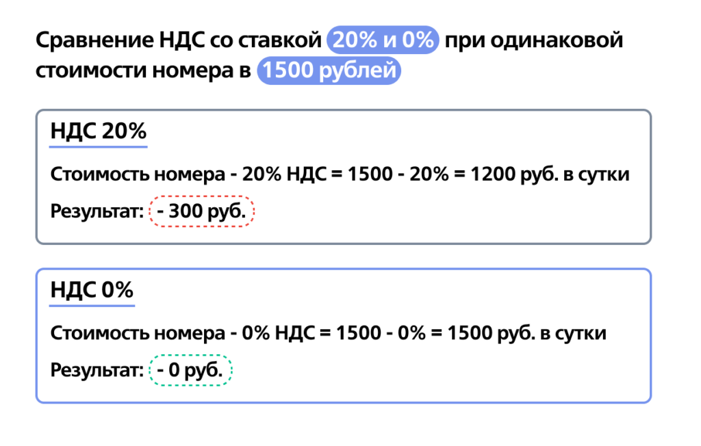 Бизнес может не платить НДС при оказании услуги и распоряжаться сэкономленной суммой на своё усмотрение. Например, потратить на рекламу или развитие: ремонт номеров, ландшафтный дизайн территории, закупку новой мебели.