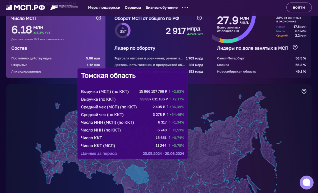 8. Статистика от Корпорации МСП.На сайте МСП.РФ можно найти в разделе «Аналитика». Для более точных данных по сферам экономики и регионам необходима авторизация на сайте.