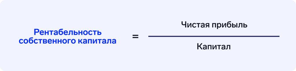 Второй показатель, за которым сто́ит следить в УБ, — рентабельность собственного капитала. Это помогает понять, насколько рентабельна ваша деятельность – чем выше показатель, тем лучше. Формула: