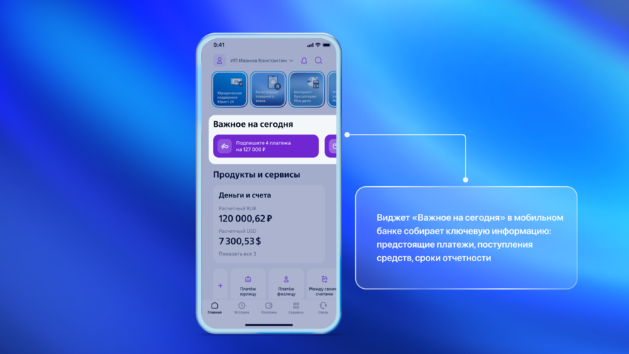Также это очень удобно в части финансовой дисциплины. Например, виджет для ежемесячного перевода средств на накопительный счет («Копилка для бизнеса») или для обязательной оплаты налогов помогает не пропускать важные финансовые операции, автоматизируя их напоминание и выполнение.