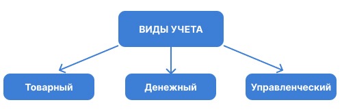 Учет бывает трех видов: товарный, денежный и управленческий.
