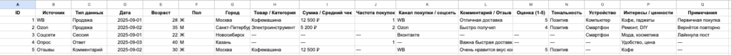 Для анализа нужна информация за последние 3–6 месяцев — подойдет все, что поможет построить портрет клиентов: