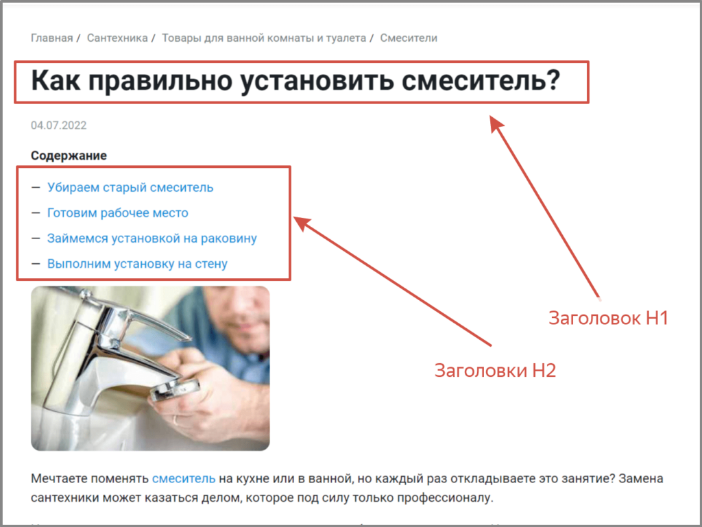- H1 — это главный заголовок, который обычно используется для названия статьи или раздела.