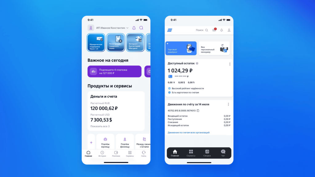 Виджет «Важное на сегодня» в мобильном банке собирает ключевую информацию: предстоящие платежи, поступления средств, сроки отчетности. Часто используемые операции (переводы, уплата налогов) можно вынести в раздел «Быстрые действия». Виджеты на главной странице также можно персонализировать под потребности своего бизнеса.