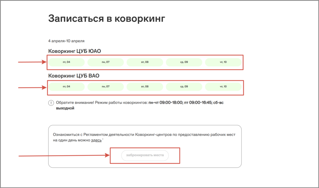 3. Откройте страницу записи в бесплатный коворкинг и ознакомьтесь с информацией.