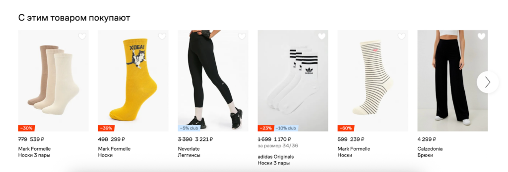 - Предложения на сайте или в приложении — можно составить подборку товаров, опираясь на прошлые заказы или текущие товары в корзине.