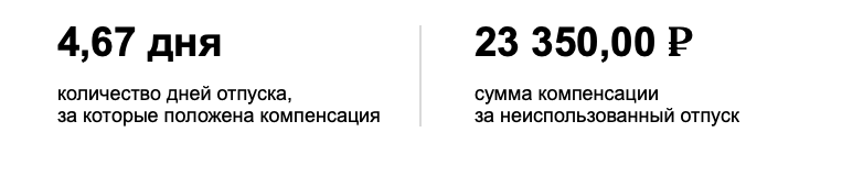 Нужно указать период работы сотрудника, сколько он отгулял дней, его средний дневной заработок. Калькулятор посчитает размер компенсации