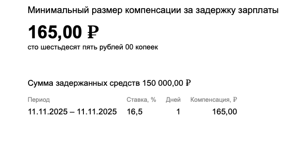 При размере задолженности в 150 000 рублей, работодатель должен будет выплачивать по 165 рублей за каждый день задержки