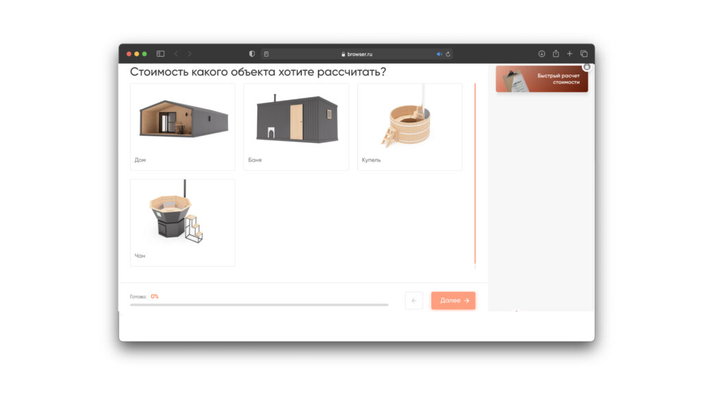 Компания по производству бань и домов только вышла на рекламный рынок, сезон уже шёл на спад, были сомнения, что квиз сработает на аудиторию 45+. Но благодаря чёткому и короткому квизу компания собирала лидов всё дешевле и дешевле.